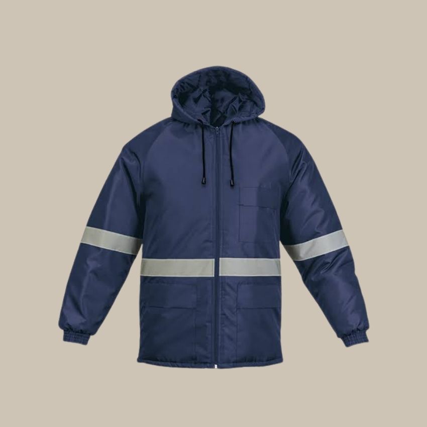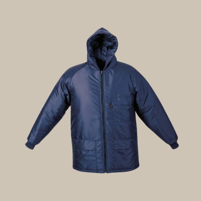 Industrial Durability: Constructed with a rugged navy blue outer shell that is built to withstand the daily wear and tear of industrial cold storage work.